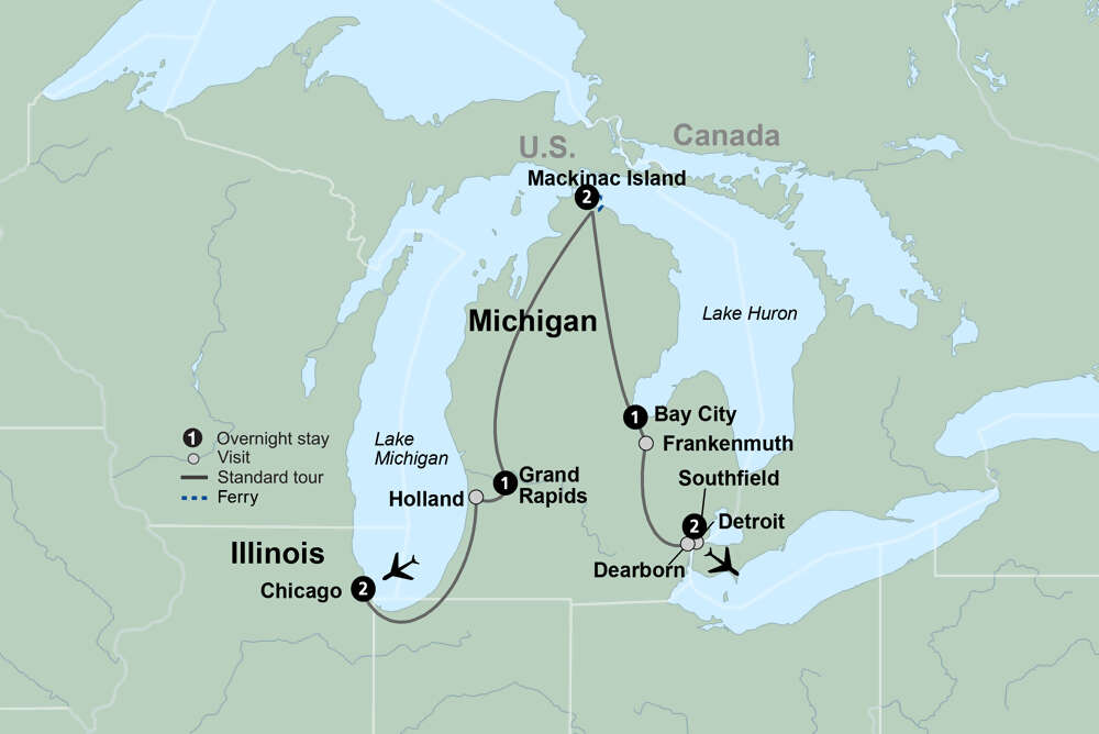 Get ready for a relaxing journey through the tranquil beauty of Mackinac Island and the Great Lakes region. This stunning landscape comes alive amid old-fashioned traditions. No activities are included today as flight arrival times will be scattered through the afternoon and evening.